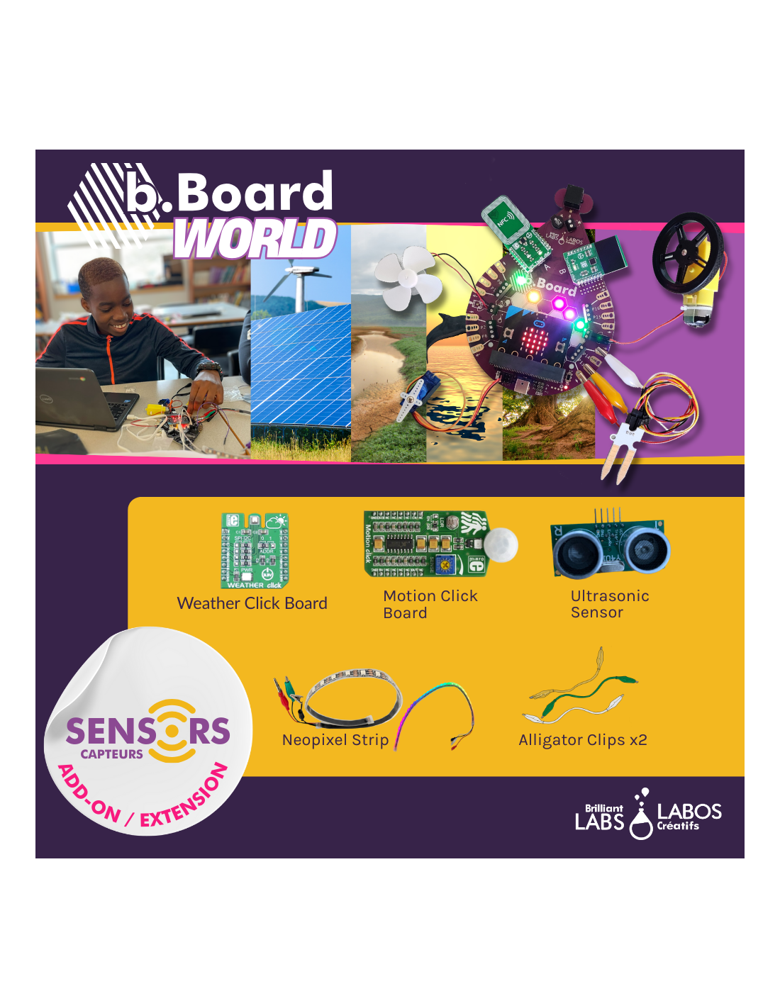 Fais des expériences avec le mouvement, la mécanique et l’automatisation grâce au Kit complémentaire b.Board – Lancement! Utilisé avec le Kit de base b.Board, ce kit aide à créer des projets qui bougent, détectent et réagissent. Avec des moteurs, des servomoteurs et des capteurs, les élèves inventent des créations comme des ventilateurs activés par la...